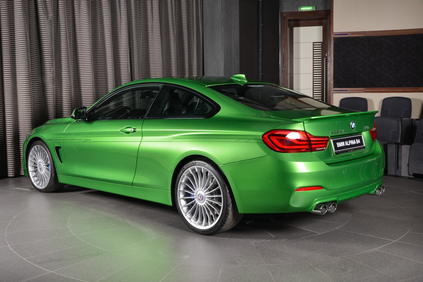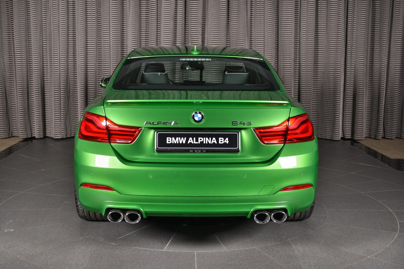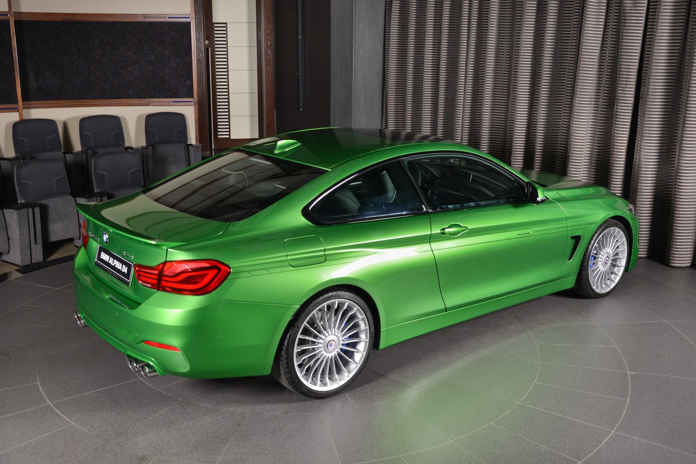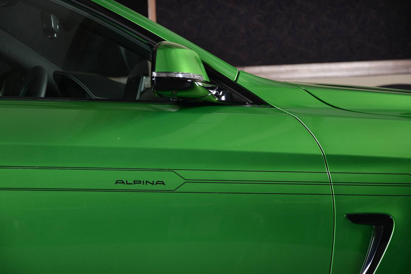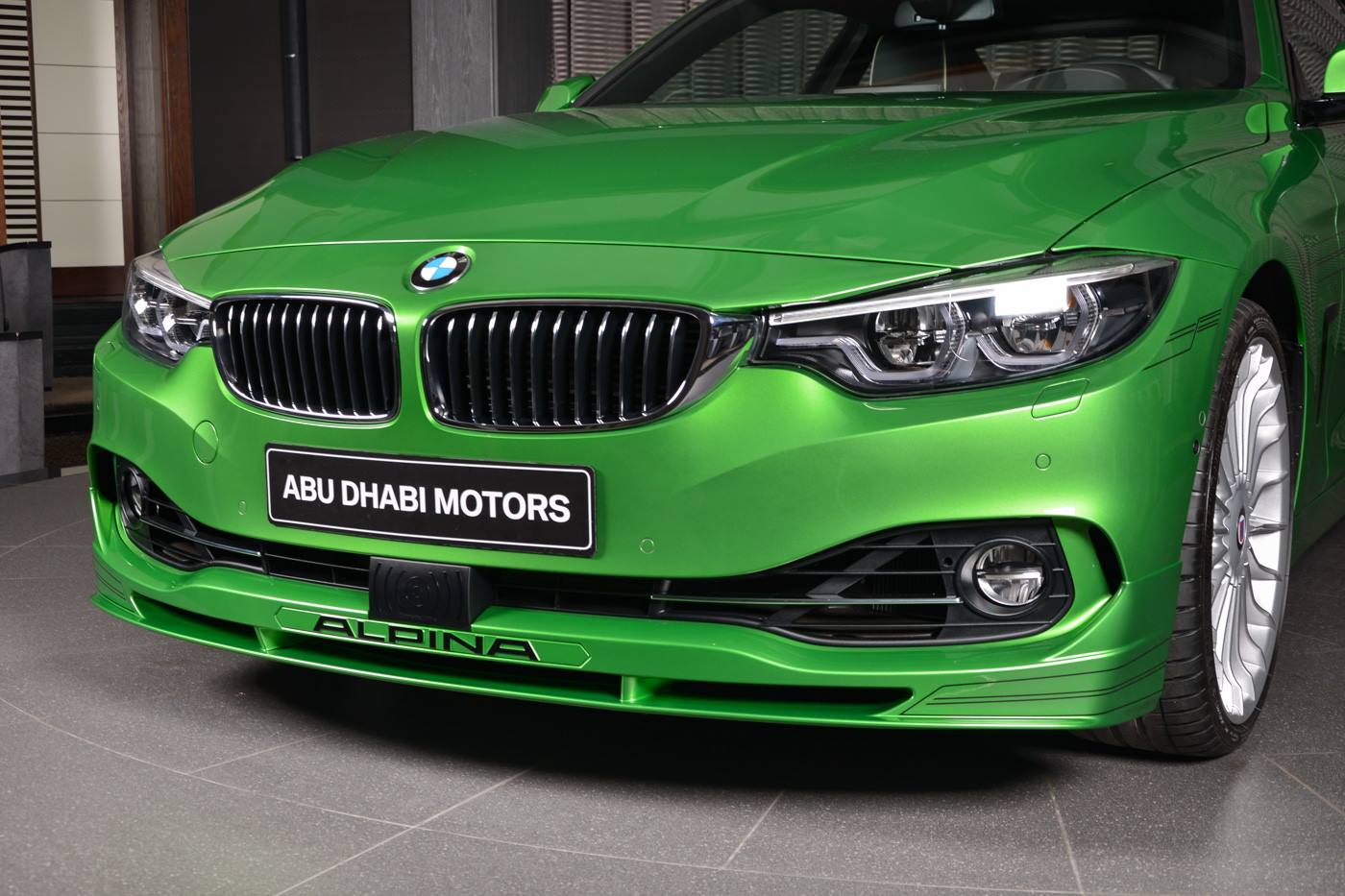 The below Alpina B4 S Bi-Turbo arriving at BMW`s most prestigious dealership in Abu Dhabi is also standing out from the crowd with BMW Individual`s Rallye Green at the exterior, plus some other styling elements that set Alpina division apart from the rest of BMW`s models.