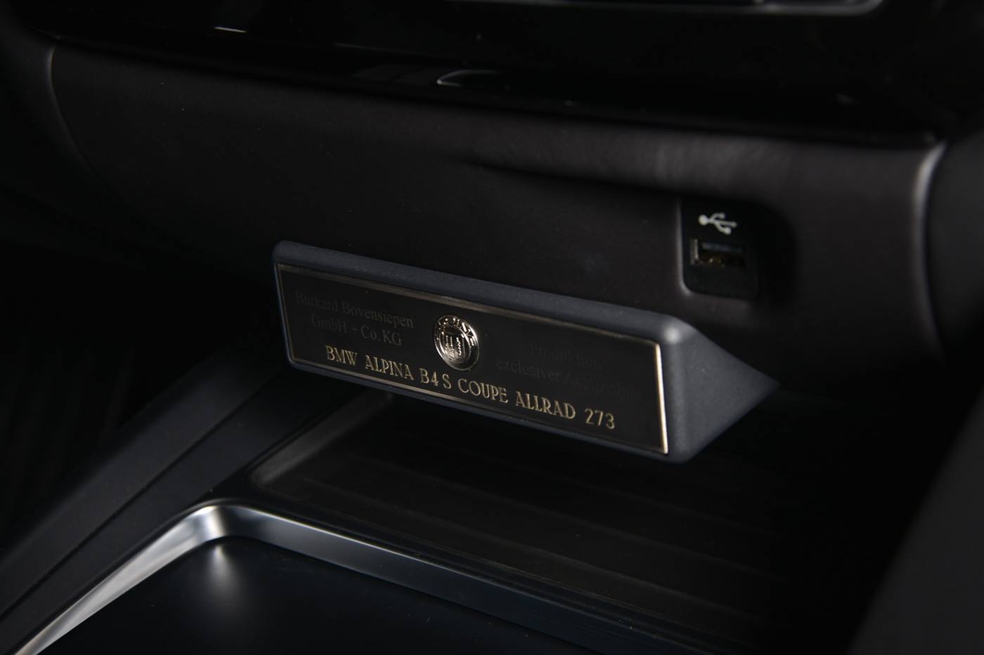 So, besides the colour wrap, everything else seems to be genuinely Alpina, starting with the stand out front bumper and continuing with the boot lid spoiler, quad tailpipes and the tuner`s own multi-spoke alloy wheels with a set of blue calipers.