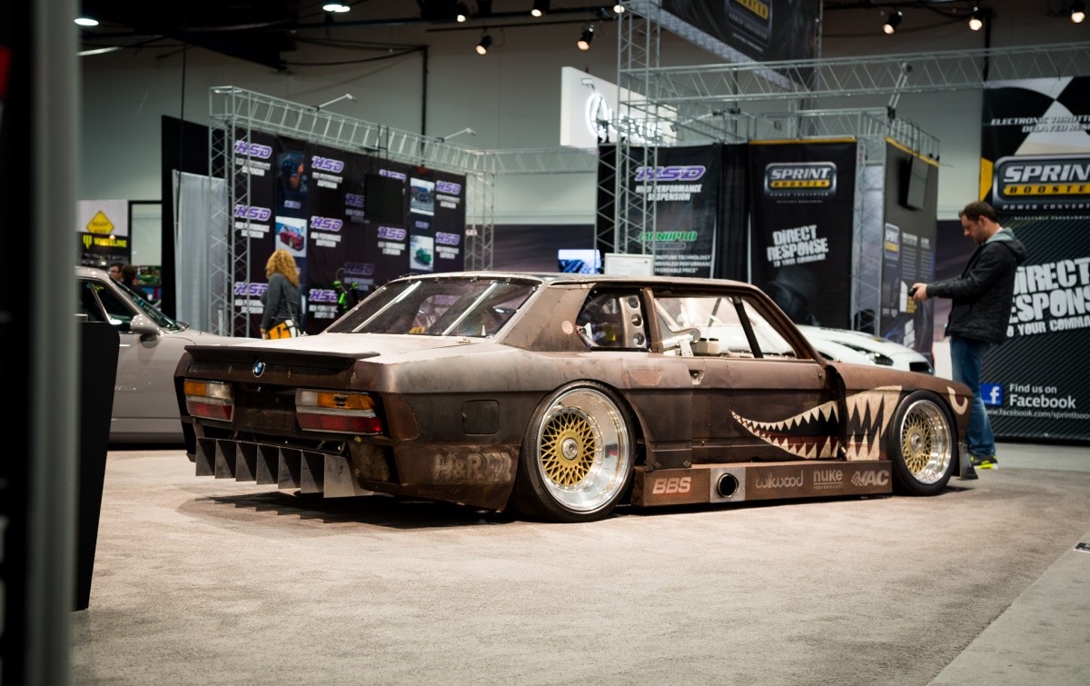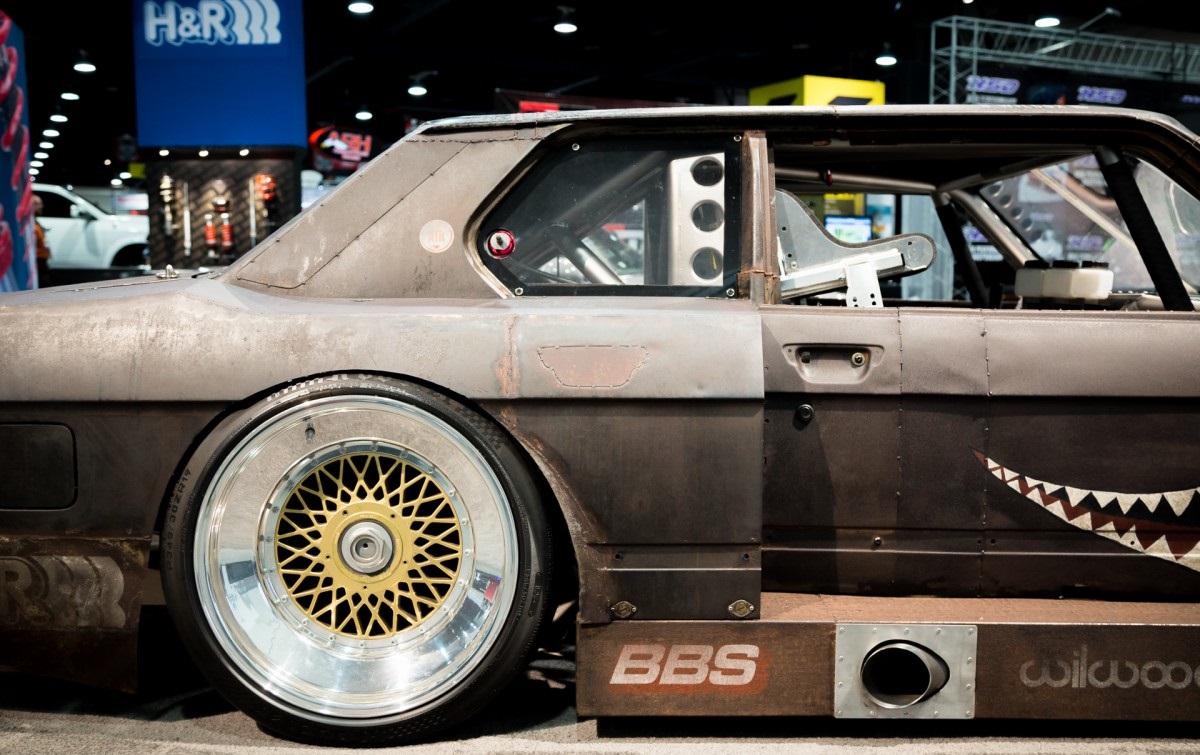 The BMW 5 Series E28 “Rusty Slammington” is in fact a rat-rod version of the same classic BMW. With a rear diffuser, side exhaust, huge wheel arches and a boxy wide body kit, “Rusty Slammington” is unmistakably a beast. The look of this E28 is wrapped by a set of BBS E57 rims wrapped in a set of thin tires. The rims complement the rest of the car through the brand new look and deep dish aspect. Mike Burroughs has even had time to add a WW2 bomber inspired decal which further gives this particular E28 style and personality.