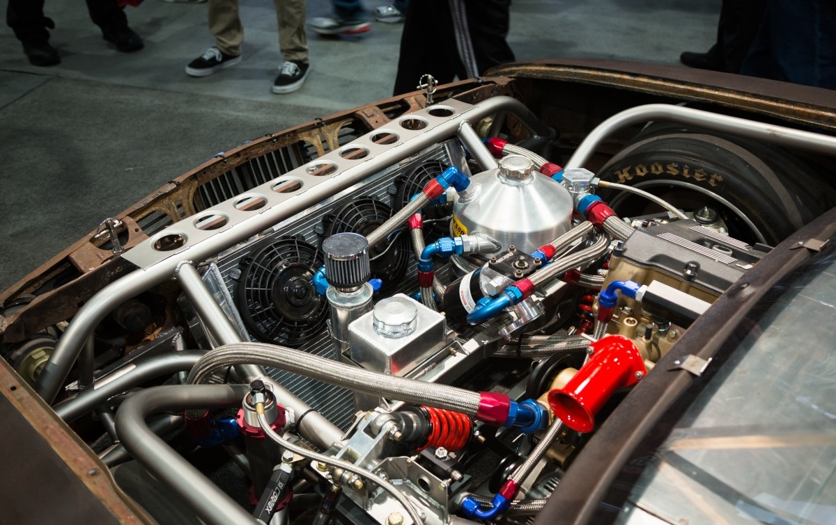 The interior has been fitted only with basics. Apart from the roll cage and the racing seats there seems to be custom made light paneling for the interior of the car as well as various custom sensors and gadgets that help determine the car’s health at any given moment. The racing steering wheel seems right at home in this particular setup.