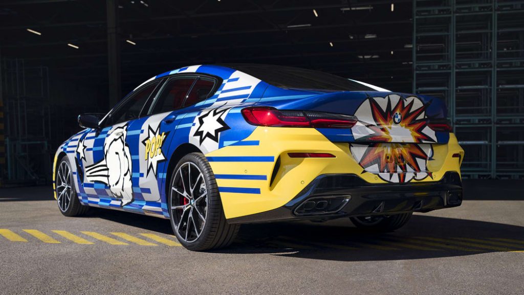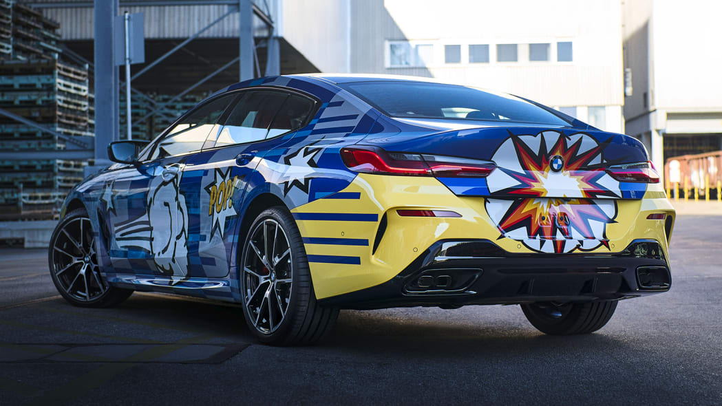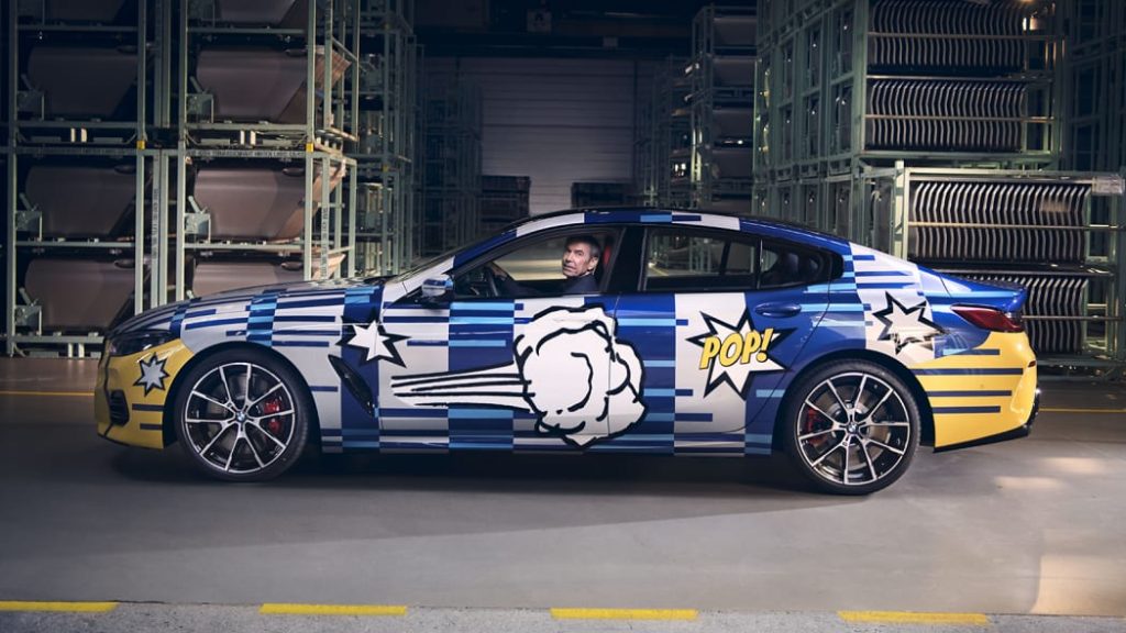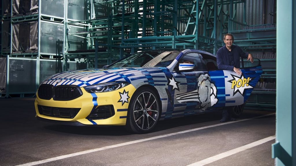 The blue is meant to symbolize the “vastness of space” and how the 8 Series is a “globally available product,” according to BMW and Koons. The comic-style stickers on the sides “symbolize the vehicle’s power and speed,” according to Koons, while the dashed lines refer to a 2010 E92 M3 GT2 Art Car also created by him.