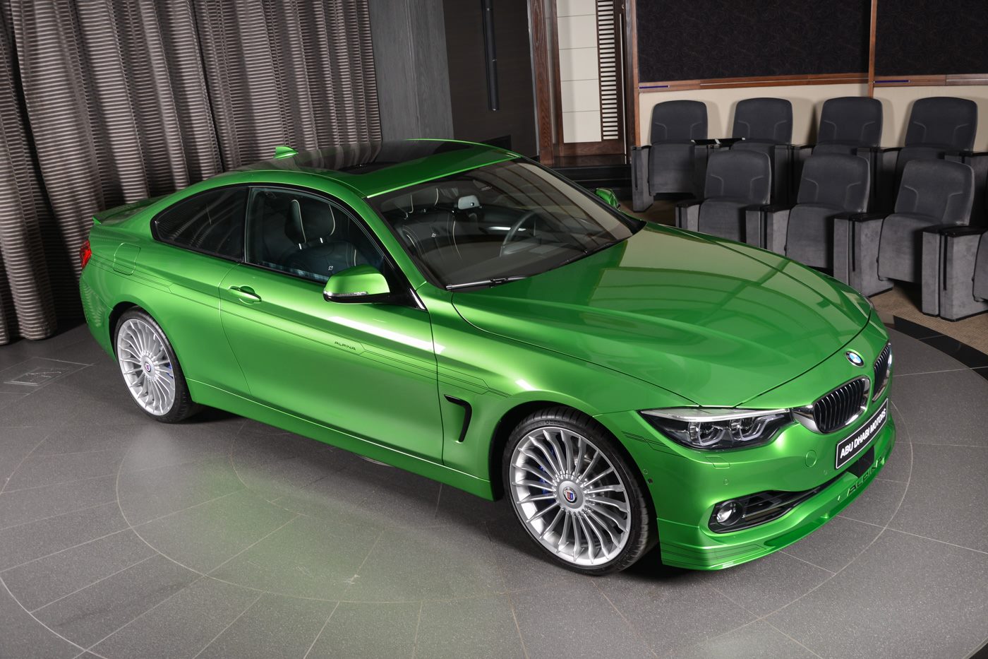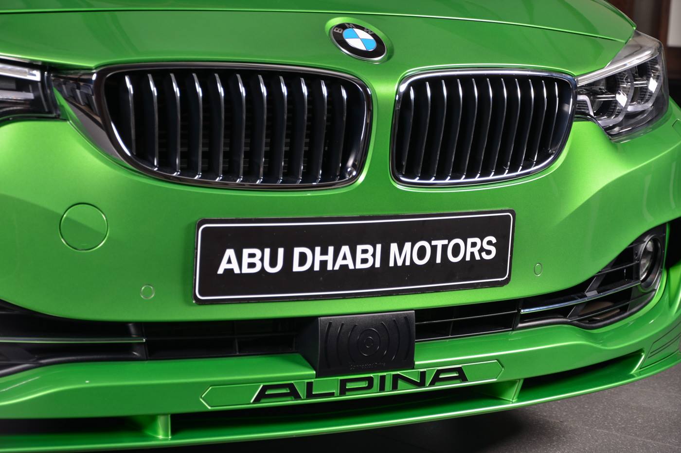 The below Alpina B4 S Bi-Turbo arriving at BMW`s most prestigious dealership in Abu Dhabi is also standing out from the crowd with BMW Individual`s Rallye Green at the exterior, plus some other styling elements that set Alpina division apart from the rest of BMW`s models.